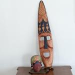 Lot 168: Carved Wood Mask, Signed Pottery Bust & Brass Trays (15 photos)