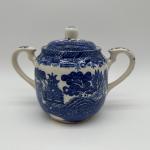 Vintage/antique blue & white transferware covered sugar bowl featuring a… Read More →