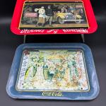 Lot of two vintage Coca-Cola themed metal serving trays, including a folding-leg… Read More →