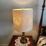 Brass Lamp W Hand Crafted Cut Shade With Grapes Design (5 photos)