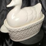 White Ceramic Duck Soup Tureen Basket Weave Japan 1970S (4 photos)