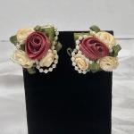 Vintage Handmade Ribbon Rose Earrings With Faux Pearl Accents | Floral Statement (3 photos)
