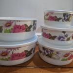 vintage floral melamine nesting storage bowls with lids 5 bowls, 4 lids… Read More →