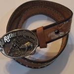 Leather belt size 32 with Buckle- Rather be Camping.… Read More →