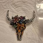 Multi Color Rhinestone Encrusted Longhorn Skull Brooch (5 photos)