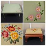 Lot 73D: Vintage Hand Painted, Wooden, Adjustable Bed Table & Needlepoint Footst (32 photos)