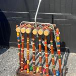 Lot 90G: Vintage 6-Player Croquet Set With Rolling Rack (12 photos)