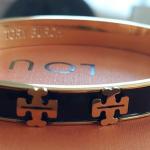 Tory Burch Kira enamel hinge bangle, a gold-plated brass cuff… Read More →