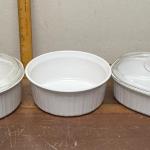 3 Corningware French White Casserole Dishes W/ Lids For 2 Out Of 3 (7 photos)