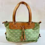 Dooney & Bourke Handbag Form 1970's Lime Green & Tan Leather Purse (6 photos)
