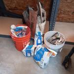 Partial Bags Of Grout Plus Cement And Tiling Tools (6 photos)