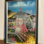 芝山 Signed Chinese Reverse Glass Painting: Pagoda Pavilion And Blossoming Lan (6 photos)