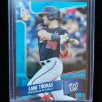 2024 Topps Big League Wrapper Redemption Lane Thomas Blue Foil /75 - Nationals P (3 photos)