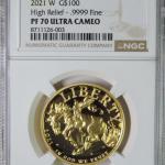 2021 W American Liberty Bucking Bronco 1Oz .9999 Gold $100 Coin Ngc Pf70 Ucam (4 photos)