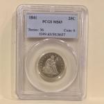1841 25C Ms63 Pcgs Seated Liberty Quarter Silver Coin (2 photos)
