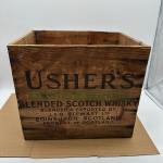Vintage wooden shipping crate for Usher’s Green Stripe Blended Scotch Whisky.… Read More →