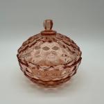 Vintage Pink Depression Glass Covered Candy Dish Diamond Pattern Trinket Bowl (11 photos)