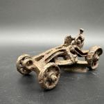 Original antique cast iron road grader toy with seated operator.