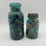 Attractive lot featuring vintage marbles displayed in two aqua/blue Ball mason… Read More →