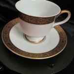 Vintage Sango Hampton 3758 Porcelain Cup And Saucer - Elegant Gold And Black Flo (3 photos)
