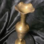 Vintage Etched Brass Bud Vase 12" Tall Scalloped Rim Floral Design (5 photos)