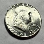 1948-P Ms60/Uncirculated Condition Silver Franklin Half Dollar As Pictured. (2 photos)