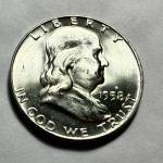 1958-D Uncirculated Condition Silver Franklin Half Dollar As Pictured. (2 photos)