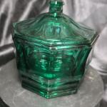 Vintage Indiana Glass Teal Green Octagon Concord Lidded Candy Dish (4 photos)