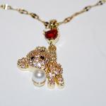 Little Jeweled Bear Necklace / Pendant Combo With Red Heart Stone + Faux Pearl A (3 photos)