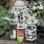 Lot 252: Outdoor Wought Iron Umbrella Table, Bird Cage, Lanter Stone Turtle And (12 photos)