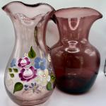 Lot 144: Beautiful Handpainted Flora Glass Vase And Glass Pitcher (10 photos)