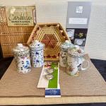 Lot 141: Set Of 4 Asian Porcelain Tea Cups With Infusers, Handwoven Wicker Baske (15 photos)