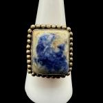 Marked Sterling Silver Vintage Sodalite And Quartz Ring [7.36G] (4 photos)