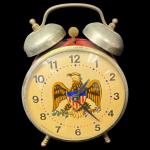 This is a twin bell alarm clock with a patriotic eagle on the face. These clocks… Read More →