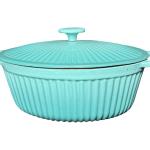 This Dutch oven has a five-quart capacity, and is turquoise in color. It is… Read More →