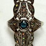 Marked .925 Art Deco Ring Sapphire & Chalcedony Filigree Ring (3.03G) (4 photos)