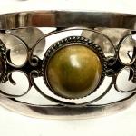 Marked Mexico Silver Green Agate Cuff (41.65G] (4 photos)