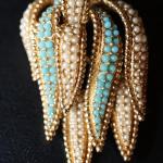 on brass faux pearls and teal colored… Read More →