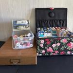 Lot 107: Sewing Basket W/Contents, Wooden Thread Drawer, Electric Scissors (Unte (2 photos)