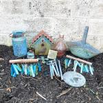 Lot 375: Garden Decor - Sun Dial, Glass Chimes, Copper Basket, Vase, Bird House (15 photos)