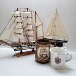 Lot 71K: Wooden Model Sailboats With Naval Academy & Sailboat Mugs (3 photos)