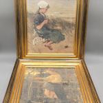 Lot 20B: Oleograph Reproductions Of "Feeding The Chickens" And "Girl Knitting In (11 photos)