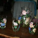 Hand Painted Glass Pichter And 3 Glasses (1 photo)