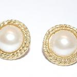 Faux Pearl Button Earrings Set With Gold Tone Rope Surround And Stud Post Clasp (2 photos)