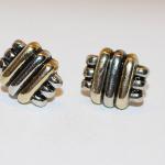 Two Tone Gold & Silver Colored Earrings Set With Overlap Triple Lines And Stud P (2 photos)
