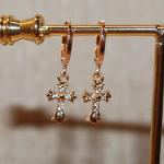 Delicate Dark Gold Tone CROSS Earrings (¾" x ½") Set with a Huggie… Read More →