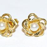 Delicate Gold Colored Single Center Faux Pearl Earrings Set With Looped Flower S (2 photos)