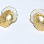 Small Gold Colored Ribbed CLAM SHELL EARRINGS Set with Stud Post Clasp