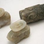 Jade Pig Purse Pulls & a Tubular Bead with Carved Figures, pigs have hole… Read More →