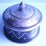 Unusual Vintage Dresser Box, appears to be made of pewter with incised… Read More →